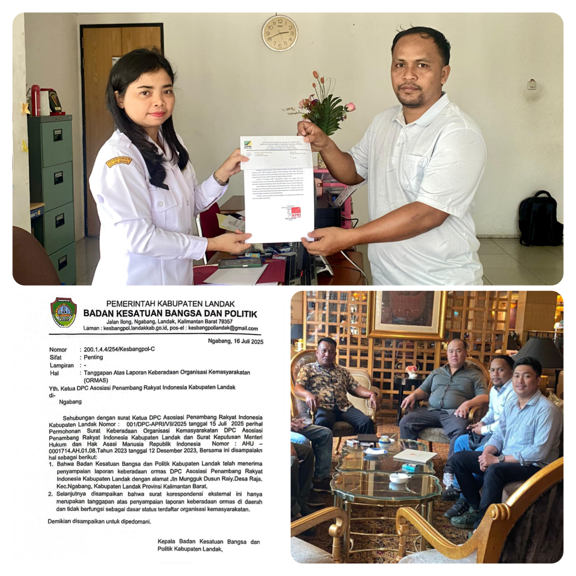 Sebagai bagian dari penguatan kelembagaan, pada 15 Juli 2025, DPC APRI Kabupaten Landak telah resmi mendaftarkan diri ke Badan Kesatuan Bangsa dan Politik (Kesbangpol) Kabupaten Landak, dan telah mendapatkan pengesahan dengan nomor: 200.1.4.4/254/Kesbangpol.c.